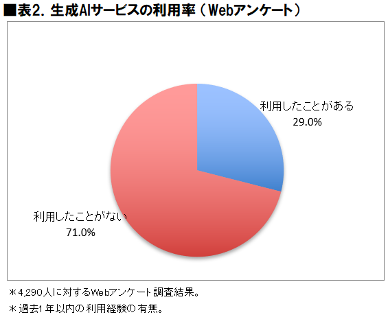 ネットユーザーの29%が直近一年以内に生成AIサービスの利用経験あり