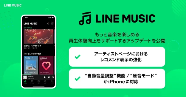 LINEヤフーは、同社が運営する音楽ストリーミングサービス「LINE MUSIC」アプリにおいて、楽曲の音量を自動調整する「自動音量調整」機能のiPhoneへの提供開始など、再生体験向上のためのアップデートを実施した。