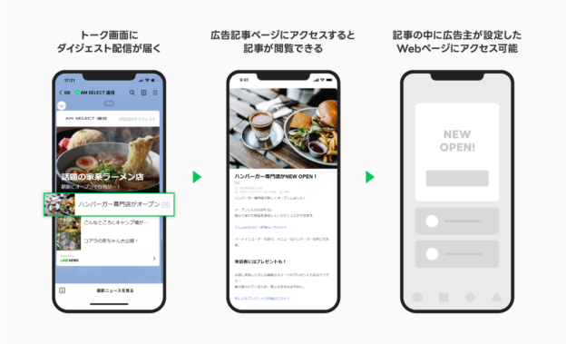 LINEは、「LINE NEWS」において、4月1日より、ローカルメディアや専門メディアを対象にした「LINEアカウントメディア Select」の新広告メニュー「DIGEST Spot for LINEアカウントメディア Select」の提供を開始すると発表した。 2015年に提供を開始した「LINEアカウントメディア」では、これまで430以上の参画メディアが独自の視点で厳選した記事を各アカウントのフォロワーに向けて届けてきた。「LINEアカウントメディア」の広告メニュー「DIGEST Spot for アカウントメディア」では、LINEのトークにプッシュ配信される「ダイジェスト記事」の一部を広告枠として、1日1枠限定で出稿することが可能となる。広告記事からは、広告主が指定したウェブサイトへ誘導することができ、これまで「Go to Eatキャンペーン」商品券の販売告知時に「DIGEST Spot for アカウントメディア」を活用し、広く県内で周知するなど、多くの参画メディア・広告主が利用しているとのこと。 またLINE NEWSでは、2022年8月よりローカルメディアや専門メディアを対象に、より身近な情報を届けるLINEアカウントメディアの新プラン「LINEアカウントメディア Select」の提供を開始し、現在では全国62のローカルメディアが参画している。今回、「LINEアカウントメディア Select」参画メディアからの多くの要望を背景に「DIGEST Spot for LINEアカウントメディア Select」の提供を開始するとのことだ。