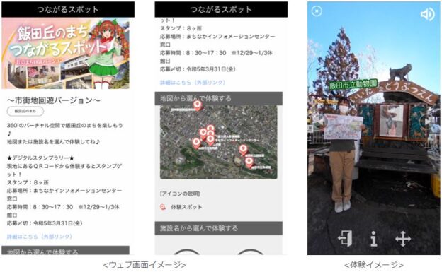 ユーザーは動物園など飯田市内の人気スポットで、現地スタッフによるスポット紹介などの360度映像を体験でき、また、現地にてコンテンツを体験したユーザーは、NFT (Non-Fungible Token)をもらえる。NFTは今後の取り組みにも活用することを予定しているとのこと。