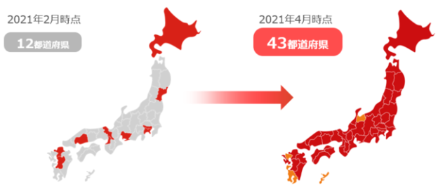 デリバリー&テイクアウトアプリmenuは、2021年3月に新たに31県へ配達エリアを拡大し、全国43都道府県へのデリバリー展開を開始した。