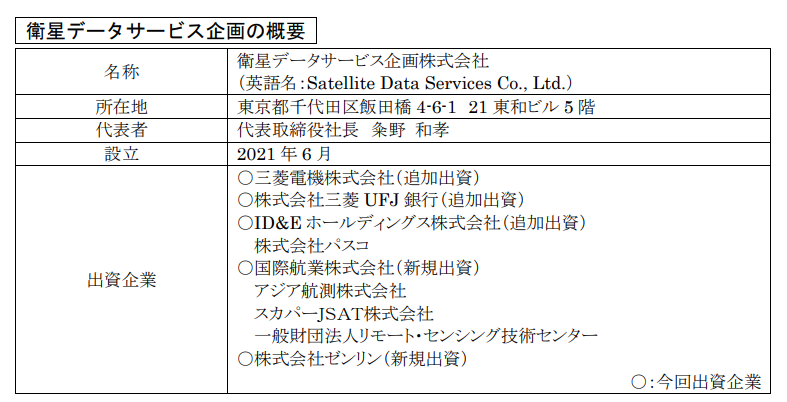 三菱電機株式会社、株式会社三菱UFJ銀行、その他の5社は、2026年2月27日に衛星データサービス企画株式会社(以下、SDS)への出資を実施したと発表した。この出資は、従来の出資者である三菱電機、三菱UFJ銀行、ID&Eホールディングスの3社による追加出資と、新たに参画した国際航業、ゼンリンの2社による第三者割当増資の引き受けによって行われた。これにより、2021年6月に企画会社として設立されたSDSは事業会社へと移行し、2026年4月からは「衛星データサービス株式会社」として、衛星データ利活用の社会実装を本格化させる。