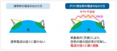 ダクト干渉は、気象条件により東シナ海や日本海上空の空気の屈折率が反転した時に、反転層内を電波が閉じ込められるように伝搬することから、通常では届かない大陸からの電波が九州や日本海沿岸まで届く伝搬現象であり、同一周波数帯を使用している無線システムに干渉妨害を与えることがある。