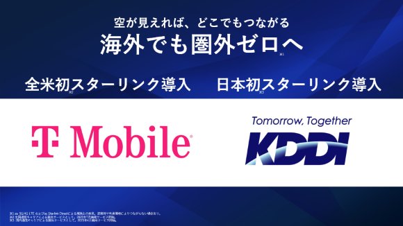 KDDIは11月17日、アメリカの大手キャリアT-Mobileとのパートナーシップを締結し、「au Starlink Direct」のローミング接続を米国で開始すると発表した。2025年度中にも、T-Mobileが提供するStarlink通信エリア(T-Satellite with STARLINK)においてサービス提供が始まる見通しだ。