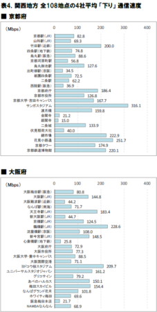 表1.関西地方 全108地点の通信速度