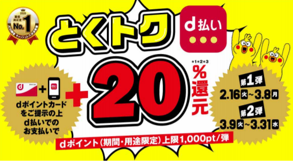 とくトク d 払い!いつでも二重ドリ d 払い+20%還元キャンペーン!