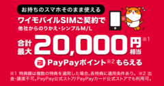 Yahoo!モバイル、ワイモバイルSIM契約でもらえるPayPayポイント増額
