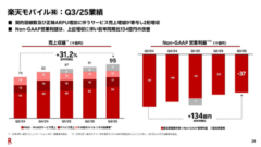 総契約回線数は2025年10月時点で950万回線(MVNOおよびBCP含む)に達した。三木谷浩史会長は「2025年内に1000万回線を目指す」とし、引き続き顧客基盤の拡大を進める姿勢を示した。MNP(番号そのまま乗り換え)純増数は9万5000回線で、前年同期(11万9000回線)からは減少したが、第2四半期(5万6000回線)からは71.4%増と持ち直した。三木谷氏は「他キャリアのプラン改定などの中で、楽天モバイルの純増数は増加トレンドを維持している」と述べた。