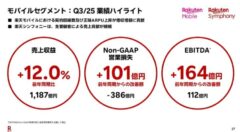 楽天グループ全体では、インターネット、フィンテック、モバイルの三本柱がそろって成長し、Non-GAAP営業利益は386億円と大幅な改善を示した。三木谷氏は「インフレ下でも楽天モバイルの相対的な魅力が高まっている」と述べ、価格据え置きとサービス拡充を両立させる戦略を今後も継続する方針を示した。