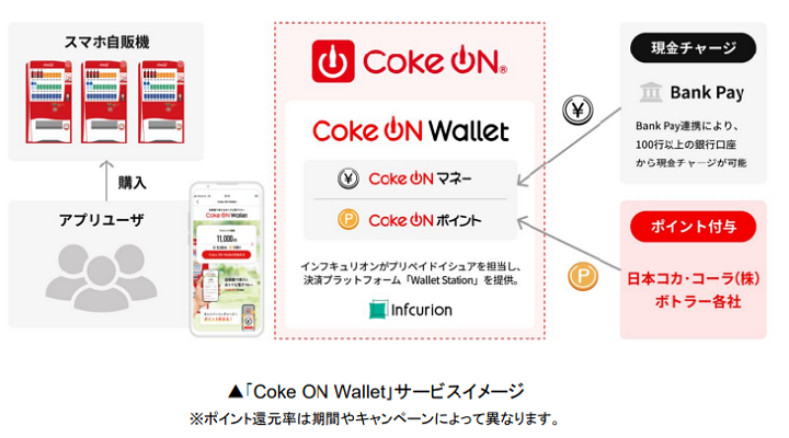 日本コカ・コーラは、コカ・コーラ公式アプリ「Coke ON(コークオン)」の新機能として、独自のポイント機能を持った電子マネー「Coke ON Wallet(コークオン ウォレット)」を、11月下旬より開始する。「Coke ON Wallet」は、Coke ONで提供されているCoke ON Payの支払い手段として利用でき、全国にある「Coke ON Pay」対応自販機42万台で利用可能となる予定。