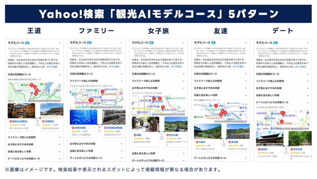 LINEヤフー、Yahoo!検索で「観光AIモデルコース」機能を提供開始
