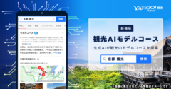 LINEヤフーは、「Yahoo!検索」の検索結果において、「地名 観光」などで検索した際、生成AIが観光のモデルコースを提案する「観光AIモデルコース」機能の提供を開始した。