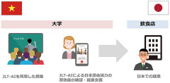 同プロジェクトでは、ベトナムの教育機関で日本語授業の教材を提供するほか、ドコモが開発した外国人向け日本語会話学習サービス「Japanese Language Training AI(JLT-AI)」を試験提供する。