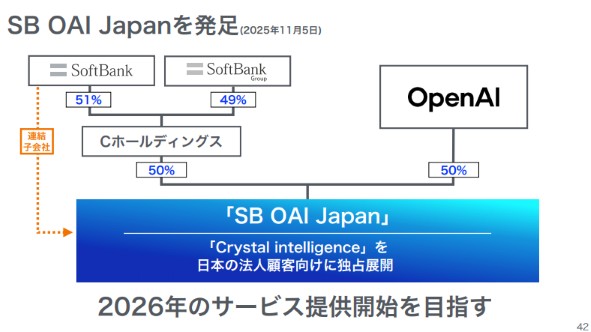 加えて、ソフトバンクグループとOpenAIによる合弁会社「SB OAI Japan」を2025年11月5日に設立。OpenAIのエンタープライズ向け最新技術とソフトバンクの運用支援力を組み合わせたAIソリューション「クリスタル・インテリジェンス」を2026年に国内で独占展開する。同社は、AIによる業務変革支援を通じて企業の生産性と経営効率の最大化を目指し、ソフトバンク自身も先行導入企業として実証を進める。これらの施策により、同社は通信を超えた社会基盤企業としてAI時代の新たな価値創出を推進していく方針だ。